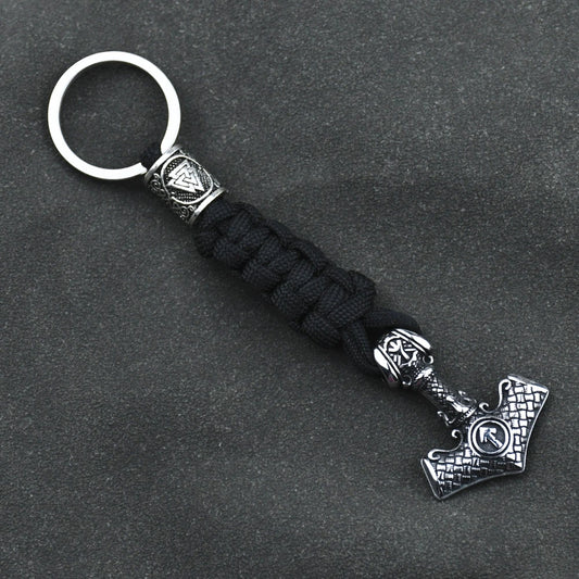 Vikings Keychain Stainless Steel Anchor Pendant Thors Hammer Paracord Norse