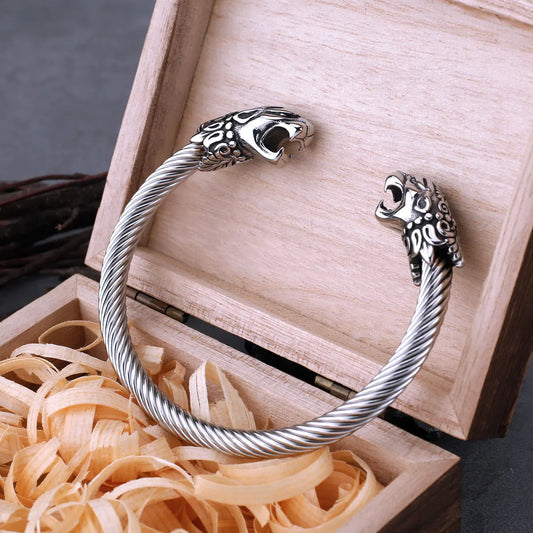 Stainless Steel Nordic Dragon Head Bracelet Viking Arm Ring