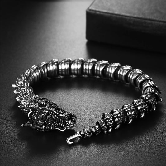 BONISKISS Men's Superior Dragon Bracelet Flexible Bendable Stainless Steel Snake Chain Charming Vintage Jewellery Unique Gift