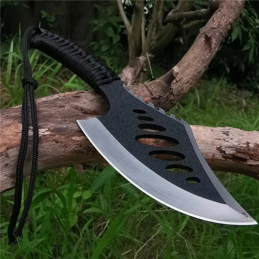 Portable Outdoor Jungle Camping Axe & Knife - Non-Slip Handle, Full Tang Stainless Steel Blade (58HRC) with Nylon Sheath, 27CM H
