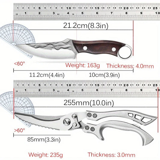 2pcS Kitchen Knife Stainless Steel Handmade Boning Cleaver Butcher Scissors Vegetable Fruit Bone Knife