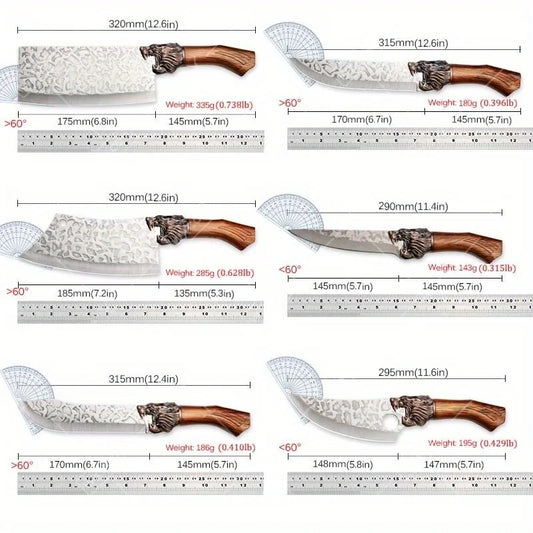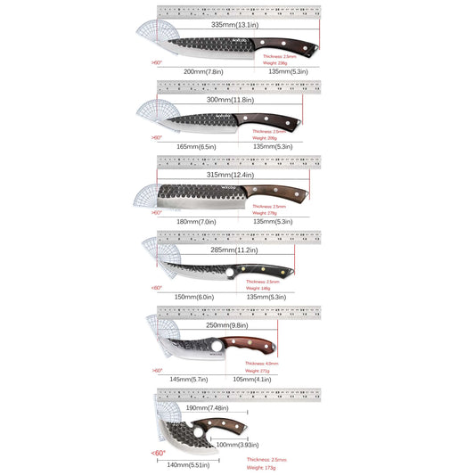 6PCS Professional Kitchen Chef Knife Set Handmade Forged Stainless Steel Meat Cleaver Utility Boning Vegetable Chopper Cutting