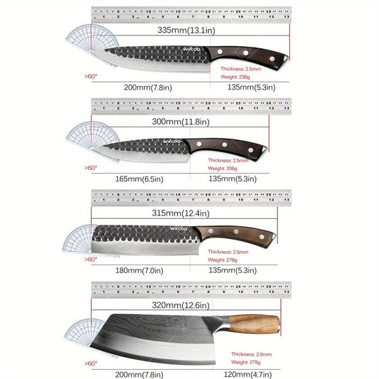 4PCS Stainless Steel Knife Set Professional Meat Cleaver Boning Knife Cutting Knife with Wooden Handle and Covers Multipurpose