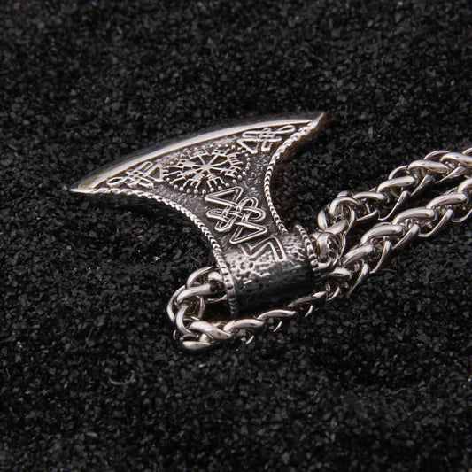 925 sterling silver Viking Vegvisir rune and Celtic knot ax necklace with keel necklace and leather chain and wood box as gift