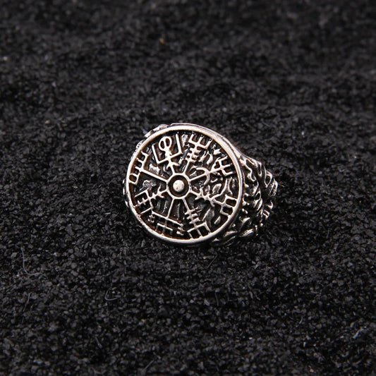 925 sterling silver Viking Vegvisir rune Shield adjustable ring with vintage viking wood box as gift