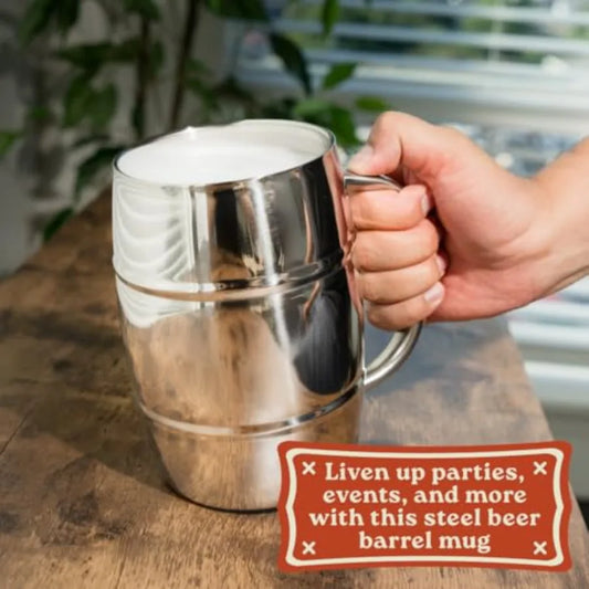 Beer Mugs Viking Cup for Beer Enthusiasts 34 oz Stainless Steel Mug with Handle Unique Barrel Stein for Men Ideal Coffee Tumble