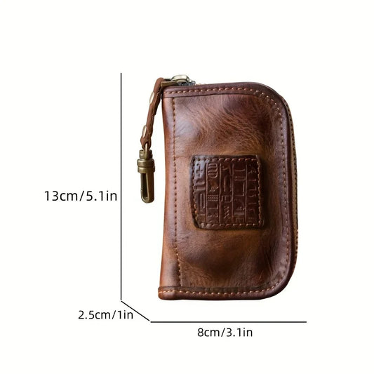 Viking Style Key Case Top Layer Cowhide Key Wallet, Large Capacity Retro Distressed Card Holder with Multi-function