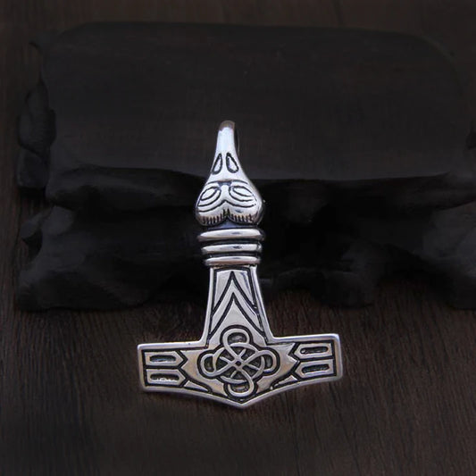 Sterling Silver Viking wolf and raven thor's hammer necklace with real leather and keel chain