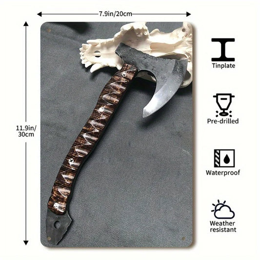 1PC 2D Flat 8*12inch Metal Sign Vintage Viking Axe Rustic Metal Wall Art Decor