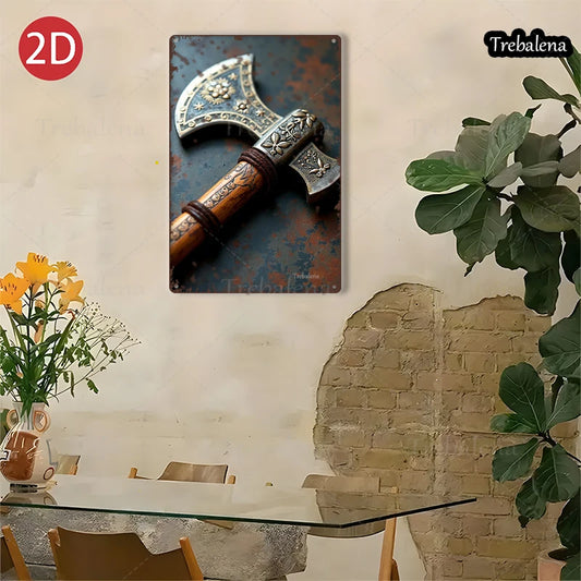 1PC 2D Flat 8*12inch Metal Sign Viking Axe Art Rustic Style Wall Decor