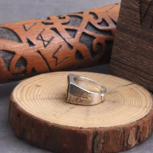 sterling silver Thor’s Hammer Mjölnir and vegvisir ring