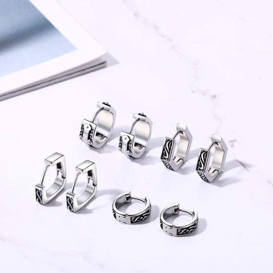 Norse Viking Runes Fenrir Wolf Head Earrings Stainless Steel