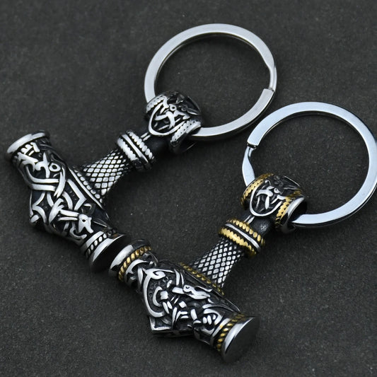 Norse Thor's Hammer Anchor Keychain Men Stainless Steel Vikings Keyring Mjolnir
