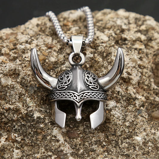 Helmet Mask Pendant for Men Stainless Steel Nordic Celtic Knot Necklace Amulet Jewelry