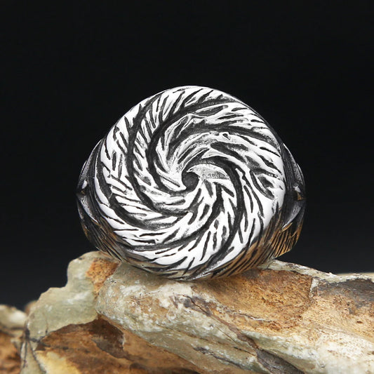 Stainless Steel Spiral Pattern Ring Swirl Flower Rings Men Women Jewelry