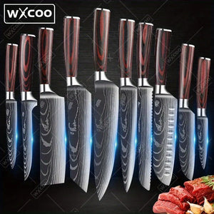 10 Pcs,High Carbon Stainless Steel Damascus Drawing Gyuto Cleaver Set Kitchen Chef Knife Set Slicer Santoku Knife Chef Knife Vegetable Knife Meat Cleaver Utility Knife Professional Boning Knife Household Kitchen Knife For Kitchen Convenience
