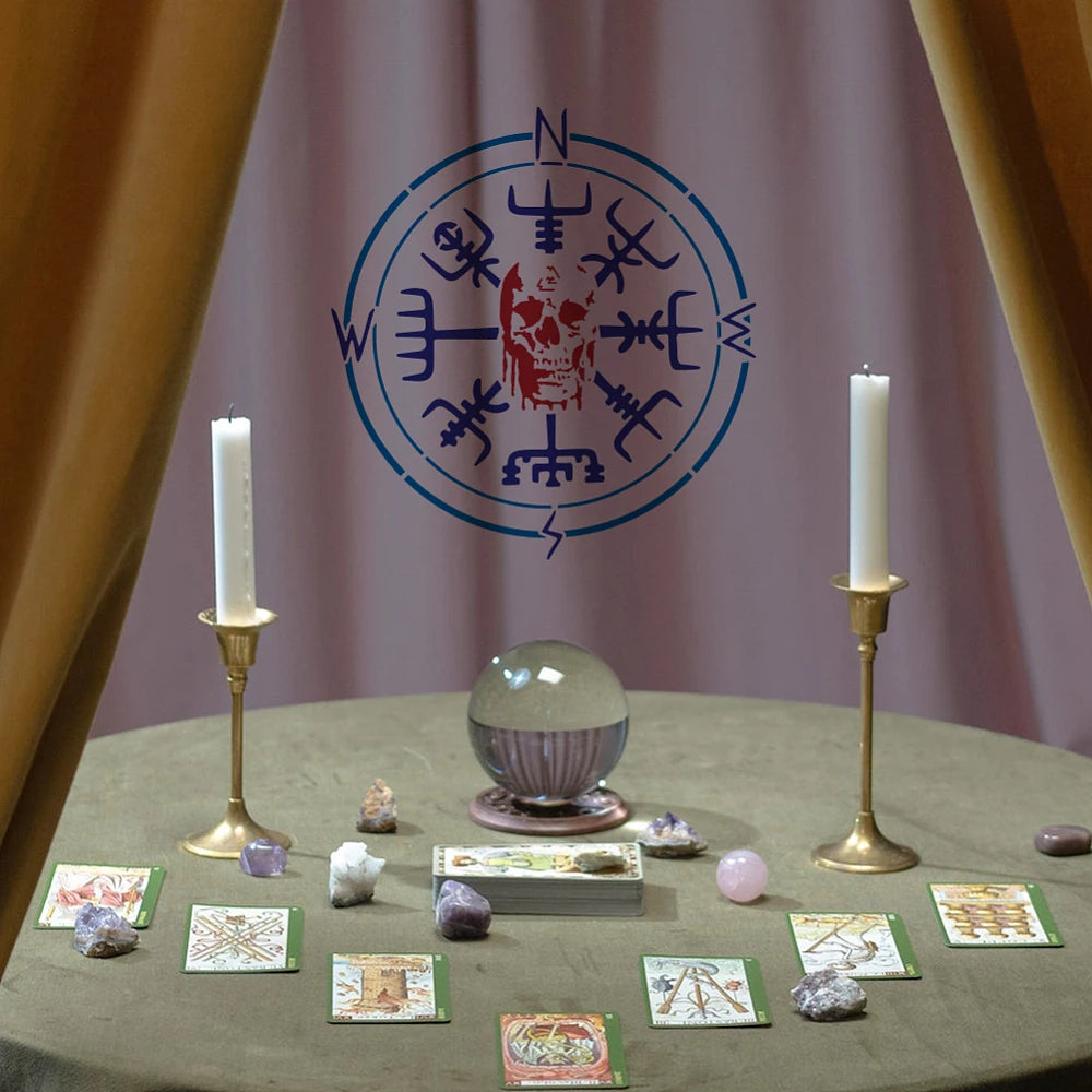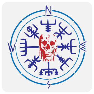 1pc Viking Compass Painting Stencil 11.8x11.8 inch Skull Compass Stencil for Painting ReusableTheme Motifs Plastic Stencil