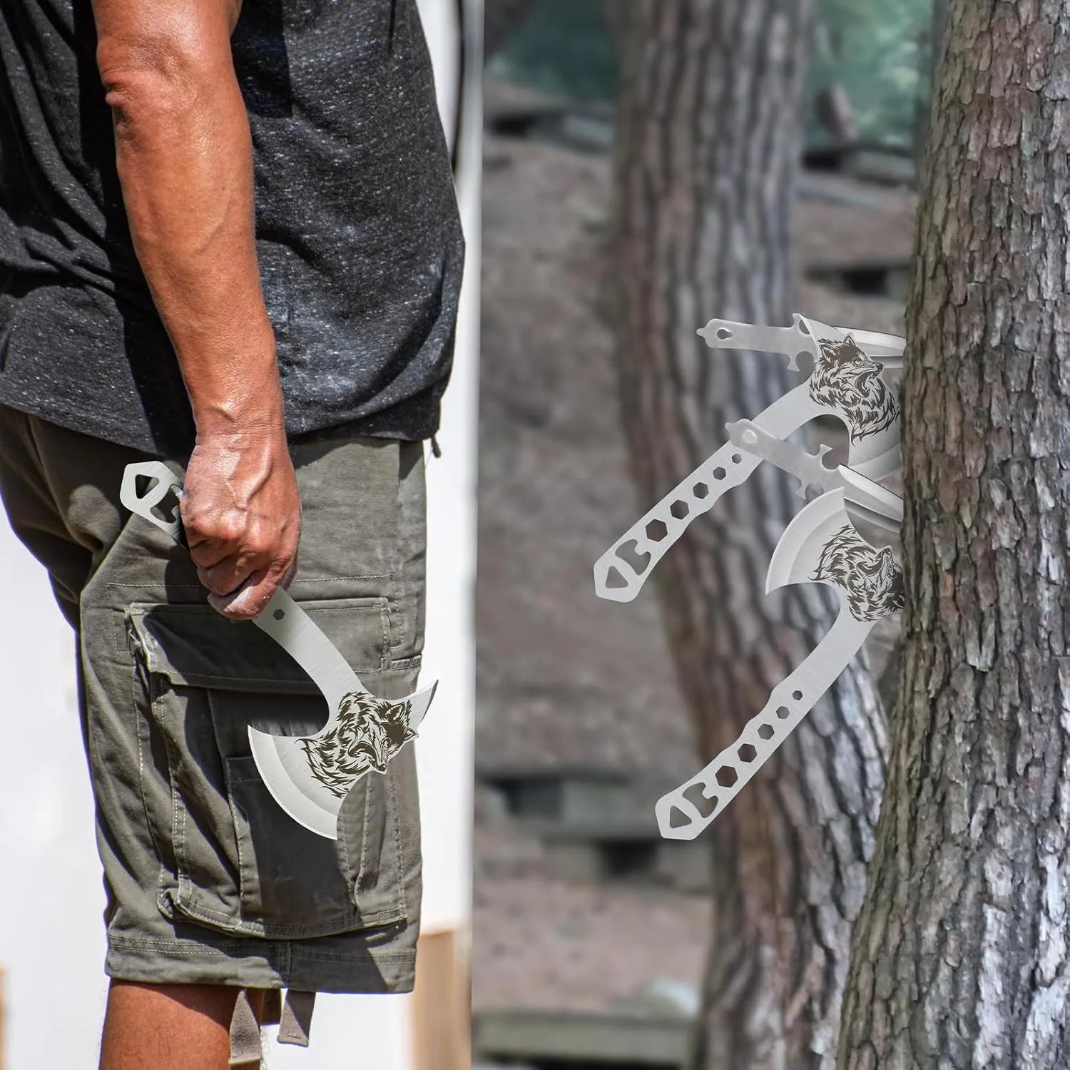 3-Piece Throwing Axe & Tomahawk Set with Built-in Corkscrew & Protective Sheath, Full Tang Stainless Steel 10.4'', Silver
