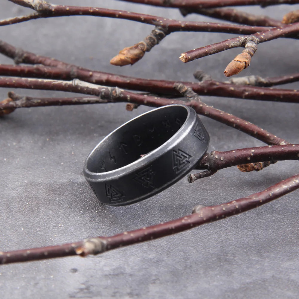 Name:316L Stainless steel Odin Norse Viking Amulet Rune Fashion Style MEN and women fashion words RETRO Rings Jewelry with wooden box