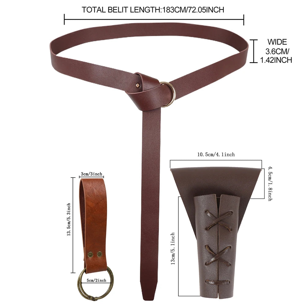 3pcs Vintage Viking Warrior Medieval Knight Belt Scabbard Halloween Cosplay Costume Weapon Accessories