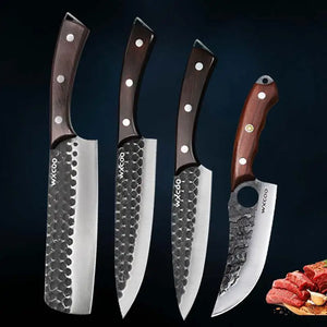 4PCS Stainless Steel Knife Set Professional Meat Cleaver Boning Knife Cutting Knife with Wooden Handle and Covers Multipurpose