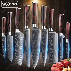 9 Pcs Kitchen Chef Knife Set High Carbon Stainless Steel Damascus Chef Knife Boning Knife Cleaver Santoku Slicer Vegetable