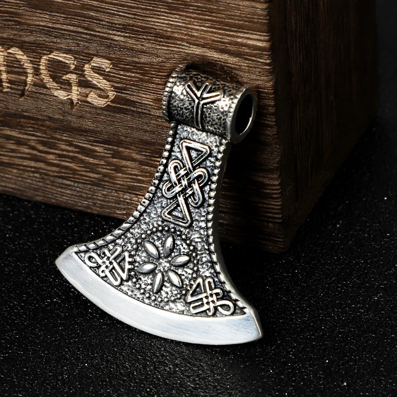 Name:925 sterling silver Viking Vegvisir rune and Celtic knot ax necklace with keel necklace and leather chain and wood box as gift