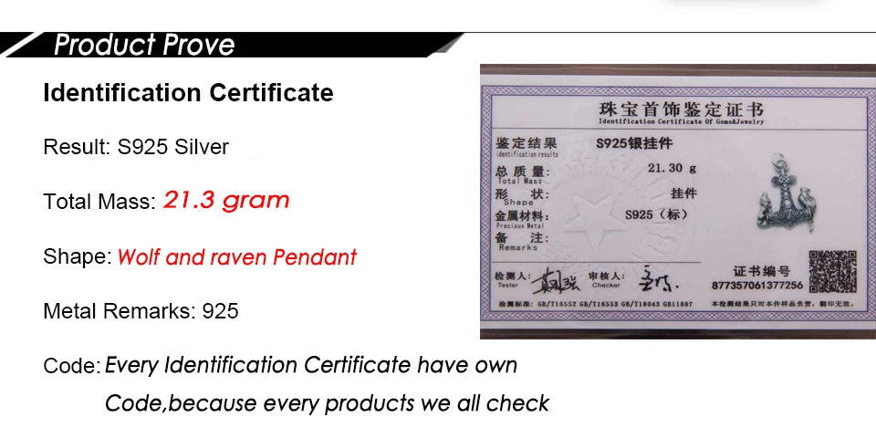 Name:925 Sterling Silver Viking wolf and raven thor's hammer pendant necklace with real leather and stainless steel keel chain