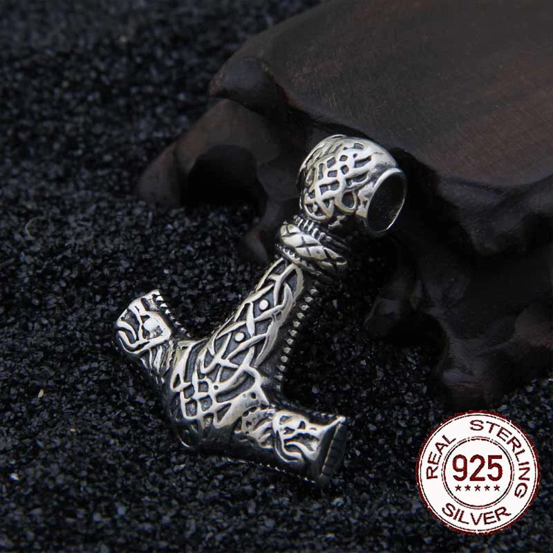 Sterling Silver Viking wolf Thor's hammer necklace