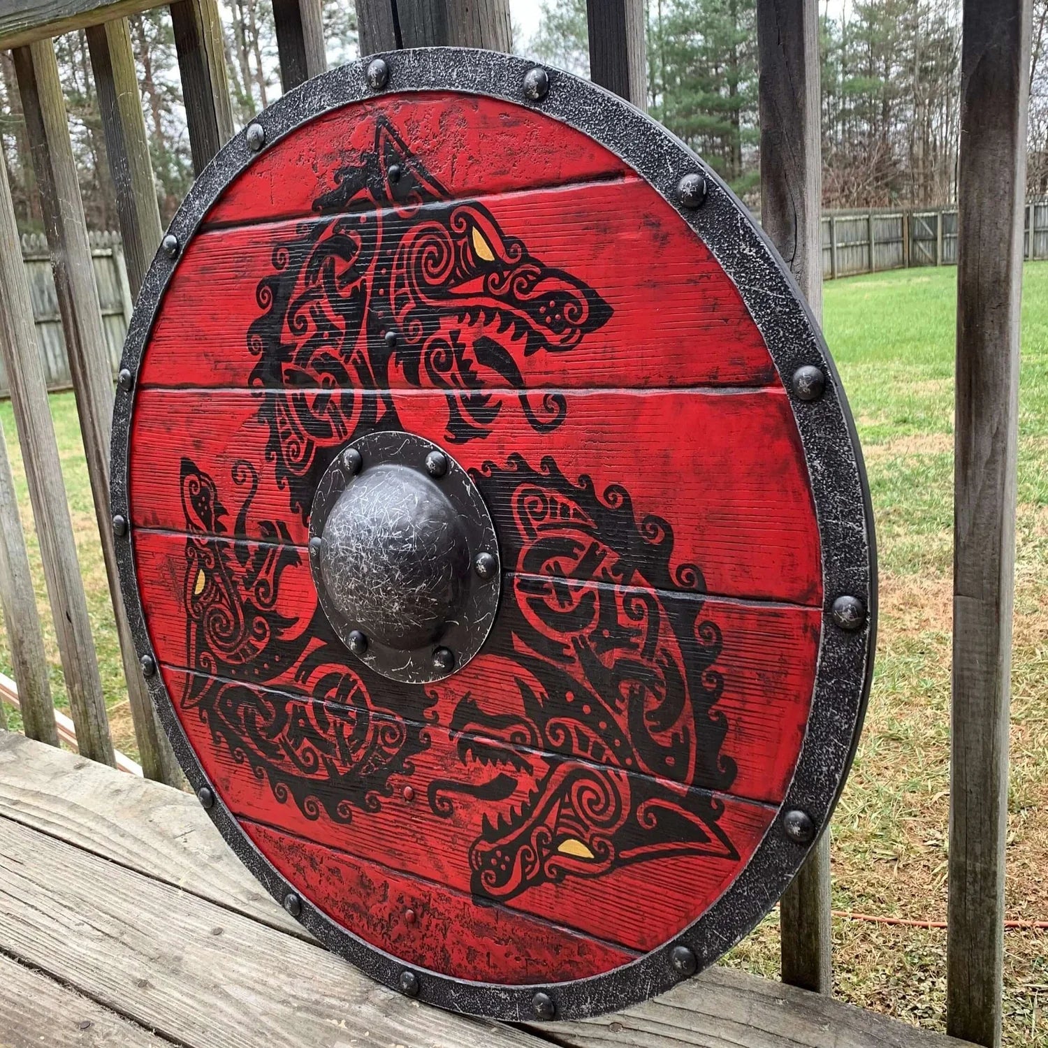 - 1 x Authentic Battle-worn Viking Shield With Fenrir Wolf