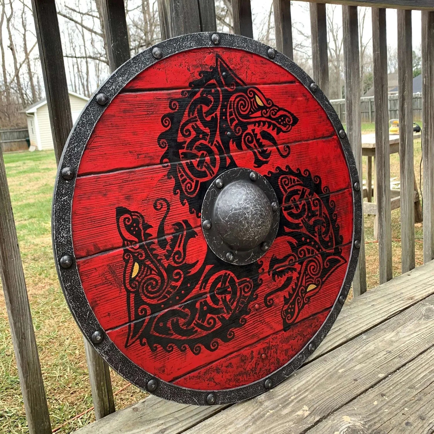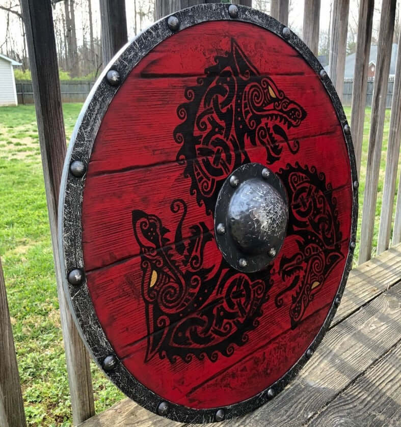 Authentic Battle-worn Viking Shield With Fenrir Wolf