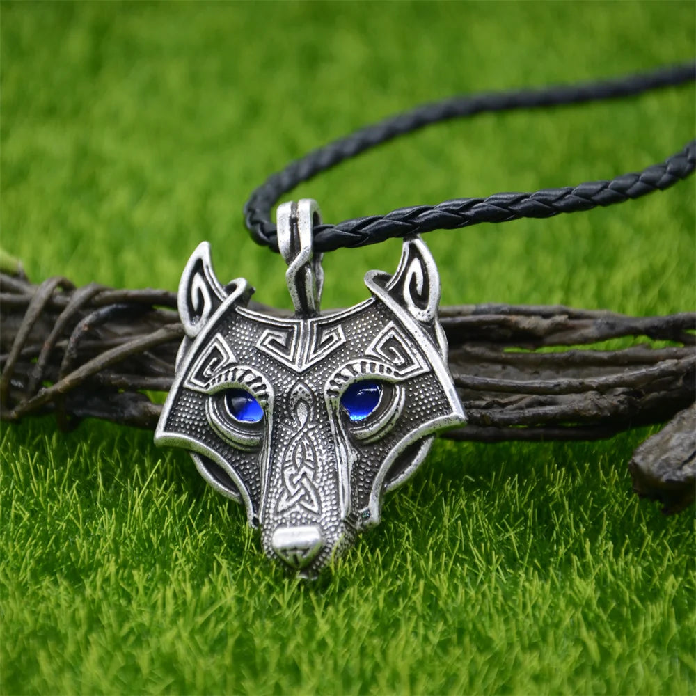 Blue Green Eyes Wolf Pendant Amulet Viking Talisman Jewelry Male Necklace