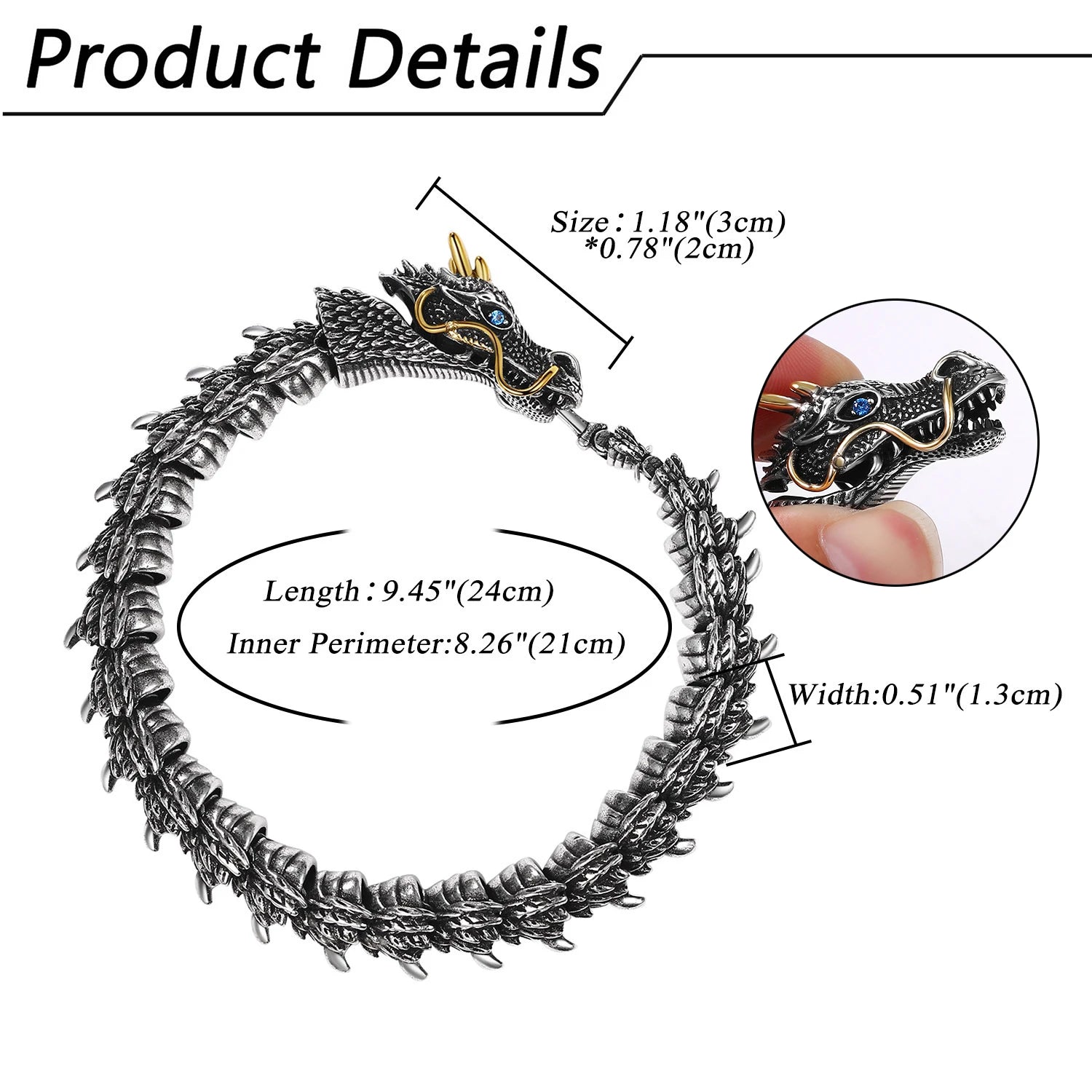 BONISKISS Men's Superior Dragon Bracelet Flexible Bendable Stainless Steel Snake Chain Charming Vintage Jewellery Unique Gift
