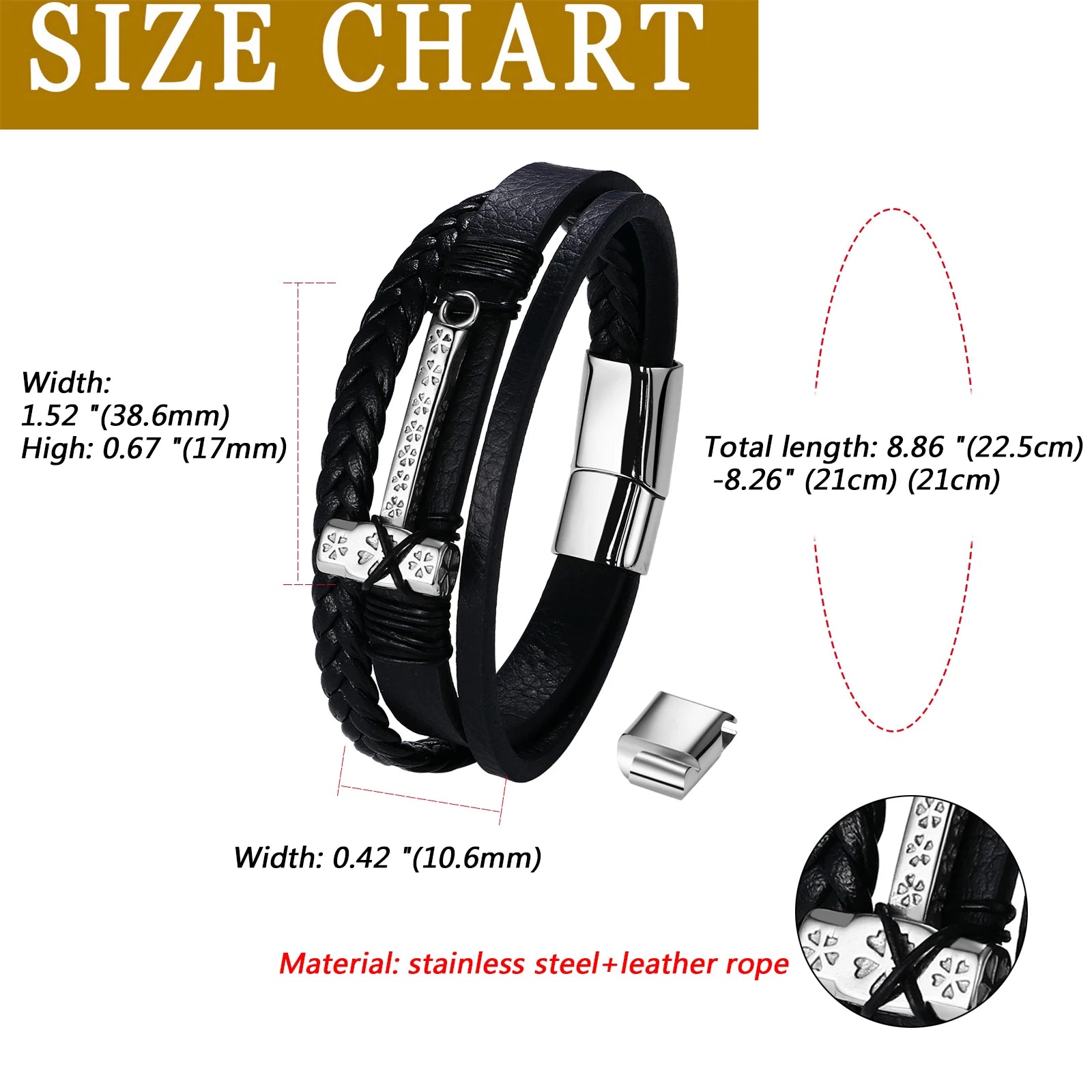 BONISKISS Vintage Viking Thor's Hammer Leather Bracelet Mens Nordic Runes Mjolnir Wristband Punk Handmade Amulet Jewelry Gift