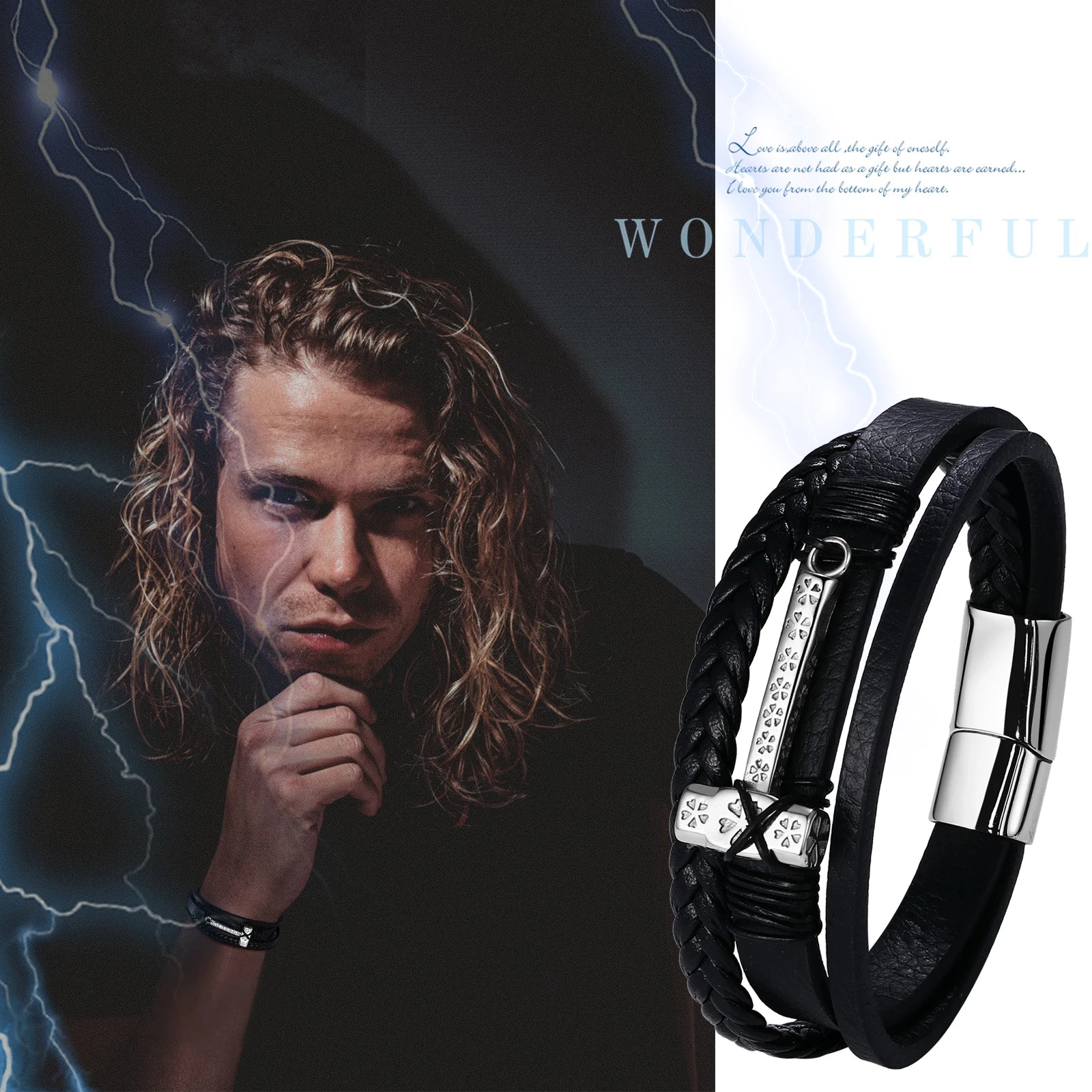 BONISKISS Vintage Viking Thor's Hammer Leather Bracelet Mens Nordic Runes Mjolnir Wristband Punk Handmade Amulet Jewelry Gift