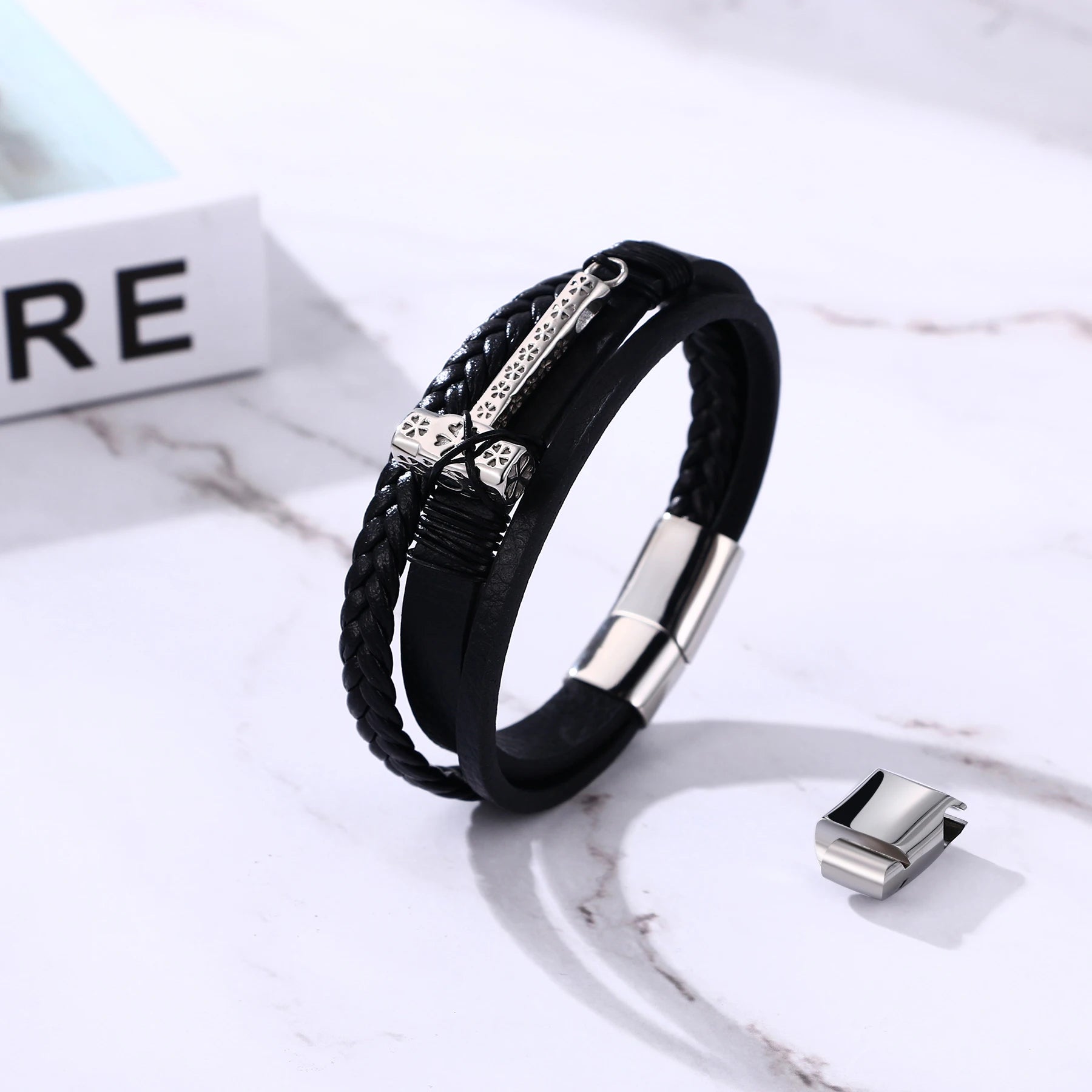This stunning men's black leather stainless steel bangle bracelet will definitely add an impressive trendy touch to your look. It is the perfect gift for any occasion - Christmas, Birthday, Father's Day, Valentine's Day, Graduation.