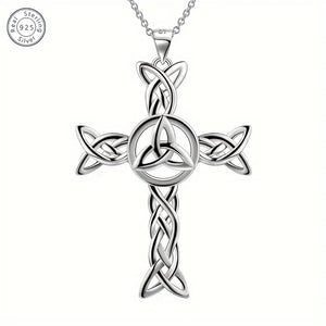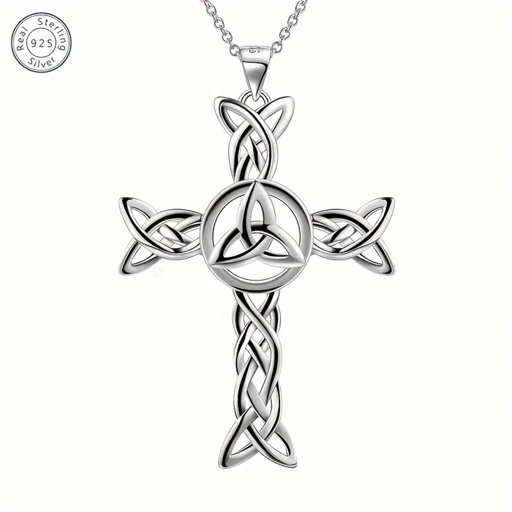 Celtic Knot Cross Pendant Necklace for Women Men 925 Sterling Silver Necklace Triangle Pendant Jewelry for Mom Grandma