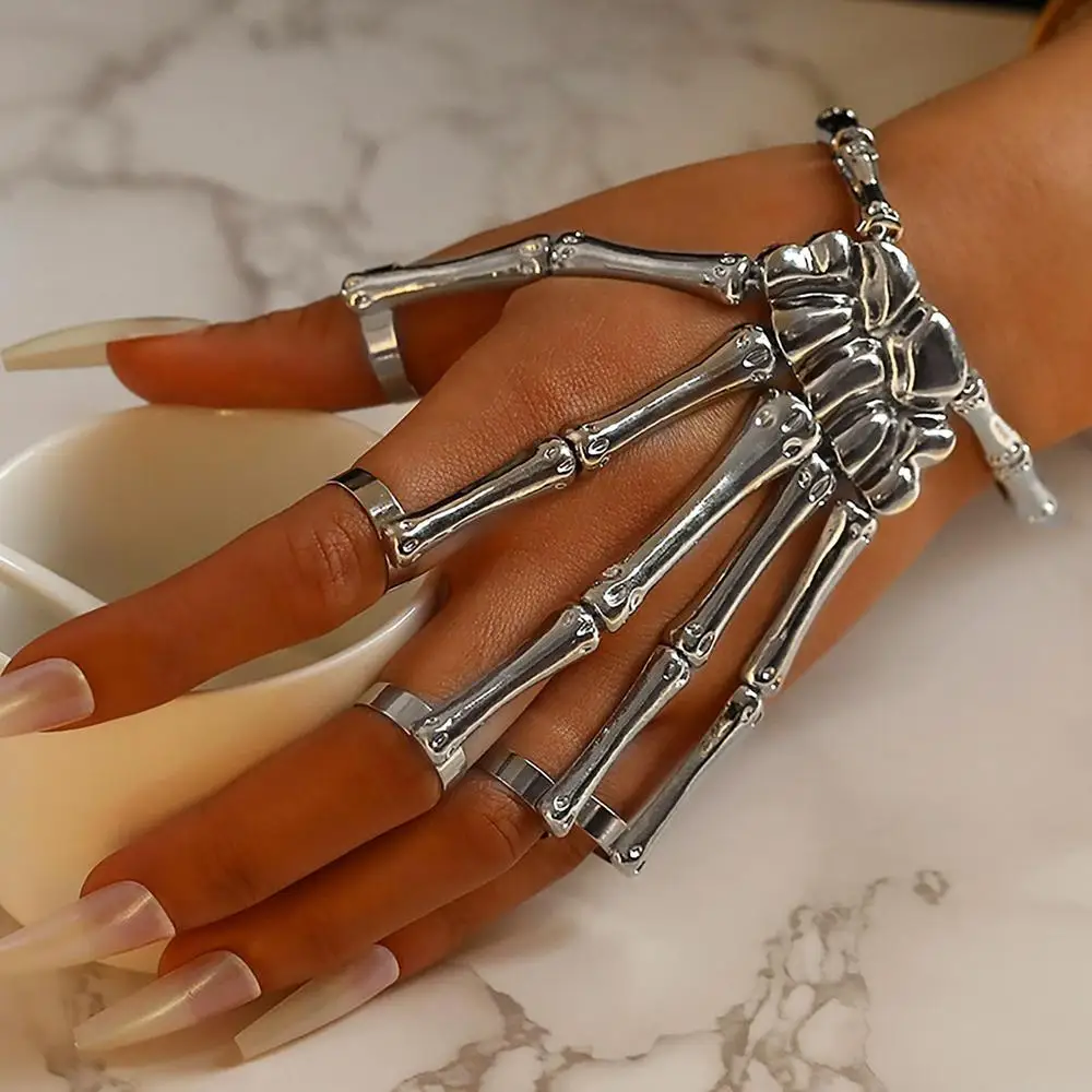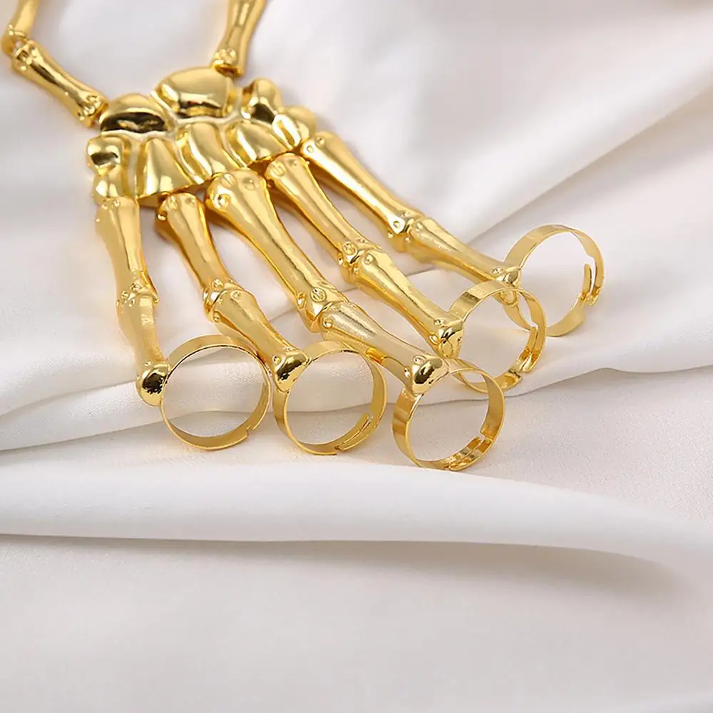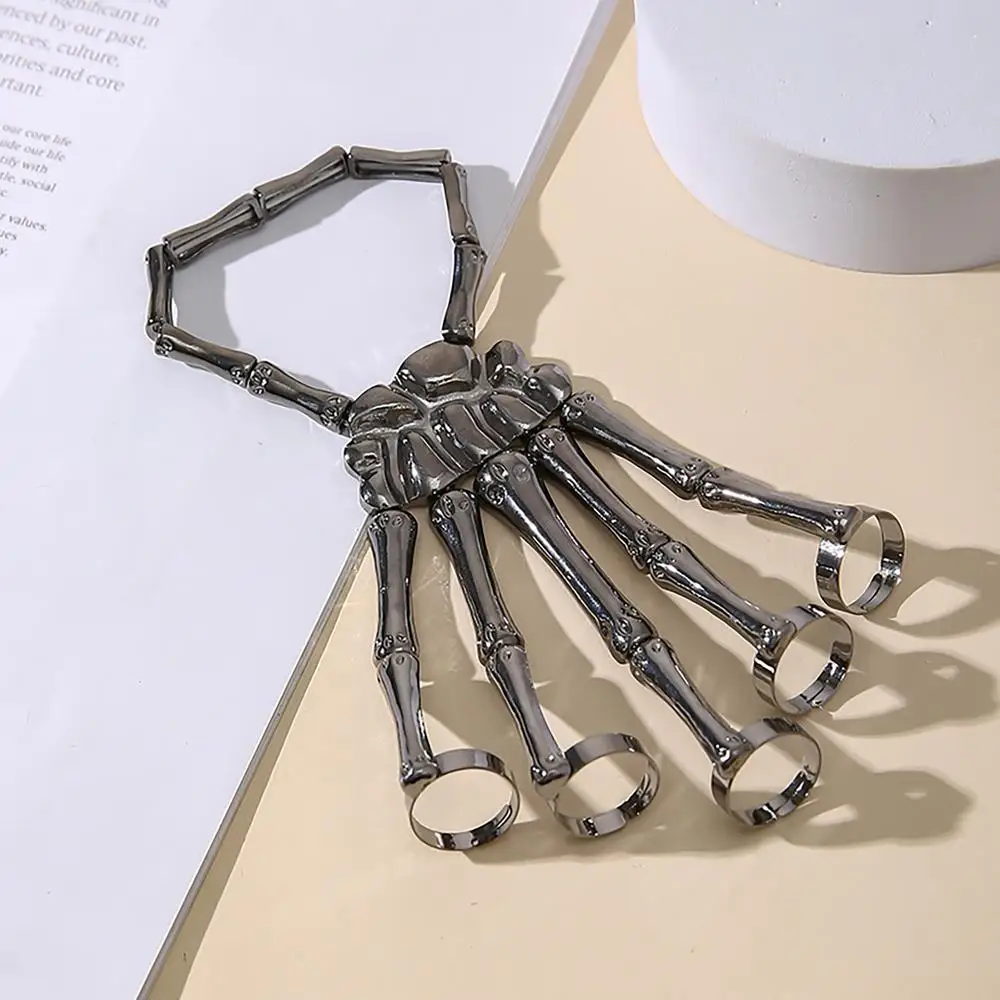 Creative Punk Skeleton Hand Bone Versatile Five Finger Ring Bracelet Adjustable One Chain Bracelet Halloween Bracelet Unisex