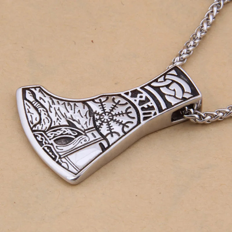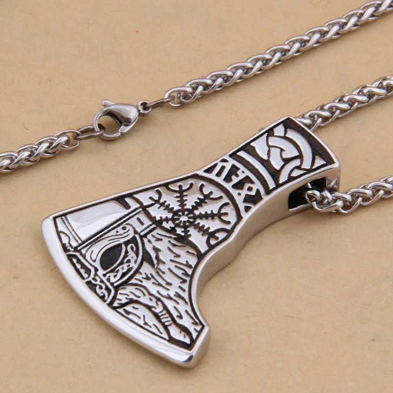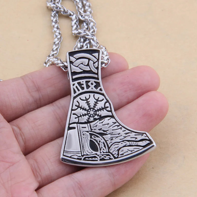 Dropshiping new arrival stainless steel Viking Mjolnir rune and Axe pendant necklace men gift