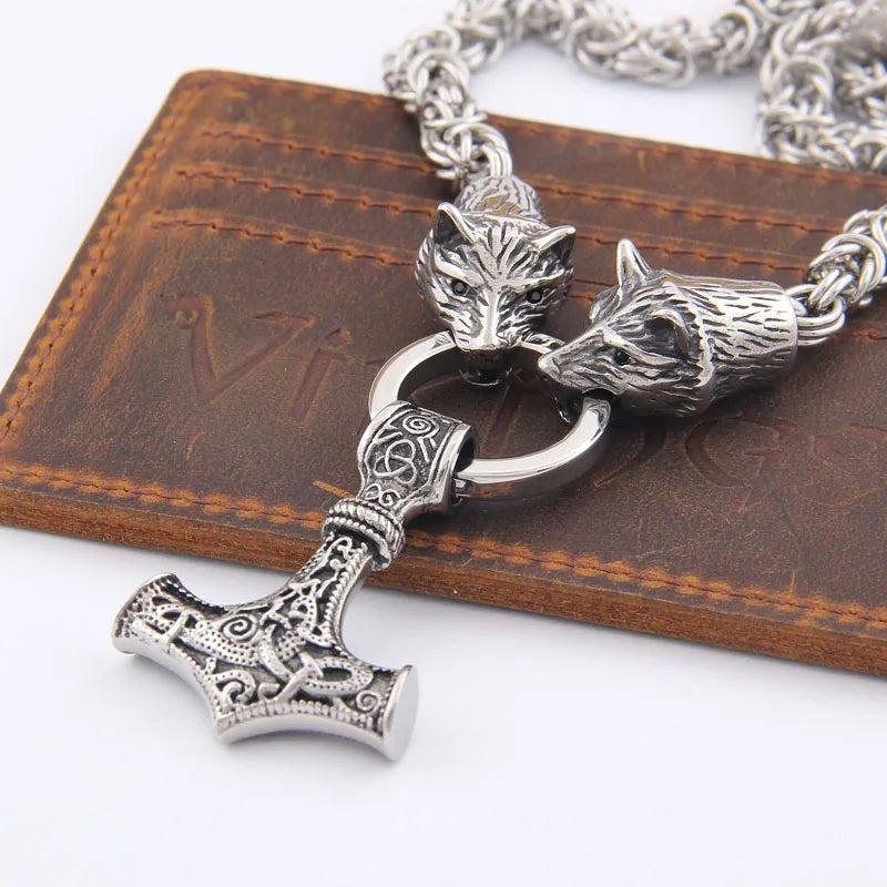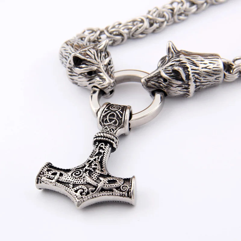 stainless steel Norse Bear head necklace Viking Thor's Hammer Mjolnir