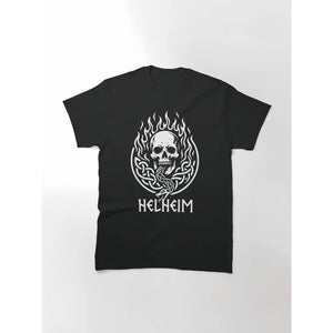 Helheim Viking Skull Graphic T-Shirt Nordic Mythology Fire Print Gothic Punk Rock Oversized Tee S-3XL