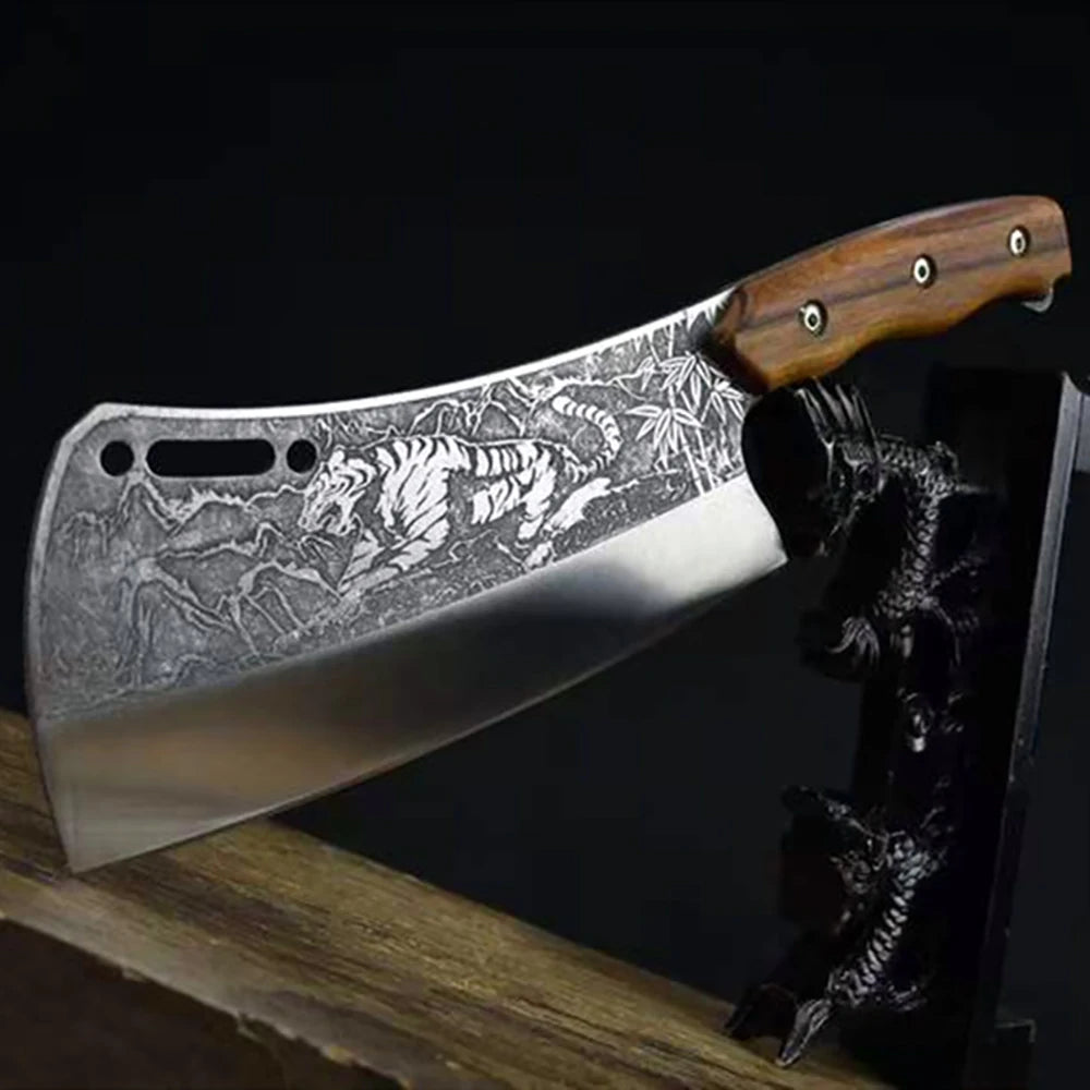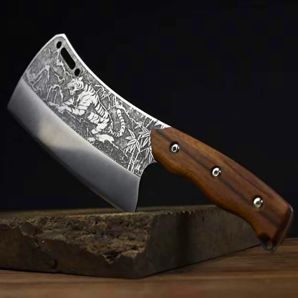 Name: Kitchen Chop Big Bone Knife Handmade Forged Machete 7Cr17 High Carbon Steel Integrated Wood Handle 8.5Inch Longquan Viking Knife