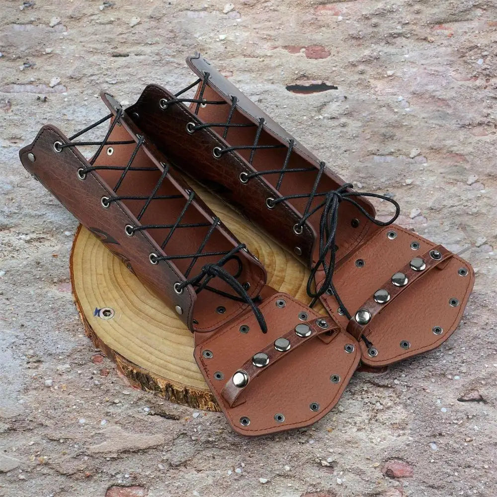 Medieval Arm Gauntlets Feather Viking Wrist And Hand Bracer Nordic Viking Style Hand Guard Costume For Playing Roles For Cosplay