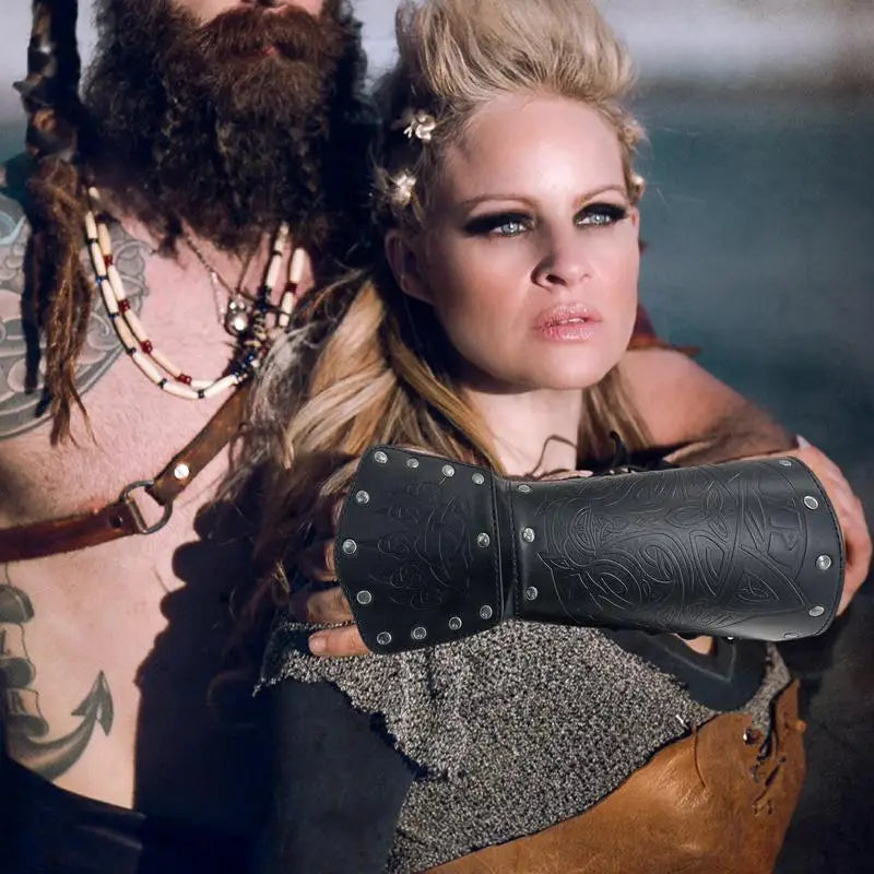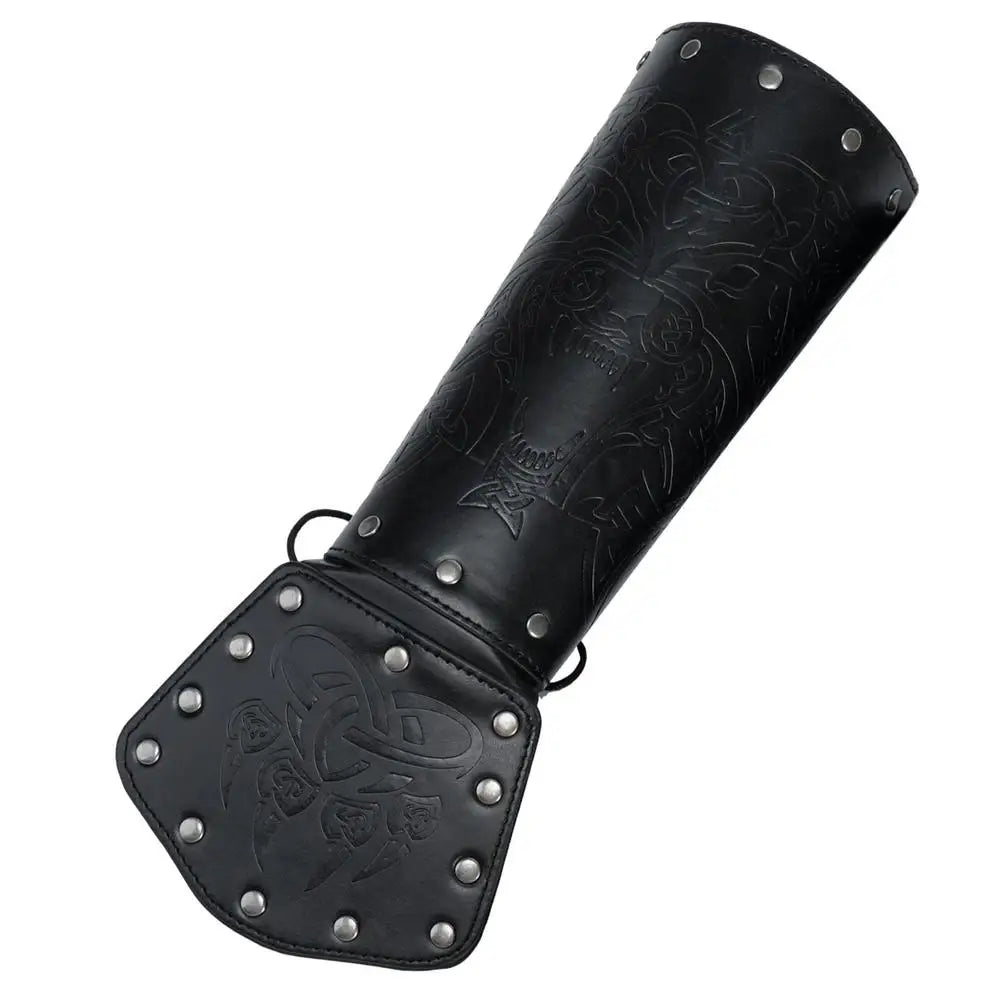 1.[ Viking Pattern ] Taking you back to the Viking age, Viking Leather Bracer is Viking style and embossed with a traditional Fenrir pattern, fully covering arms and fists.