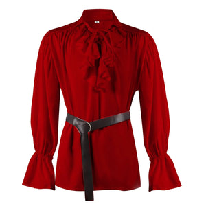 Mens Halloween Medieval Mens Medieval Lace Up Puffy Sleeve Top Ruffled Vintage Costume