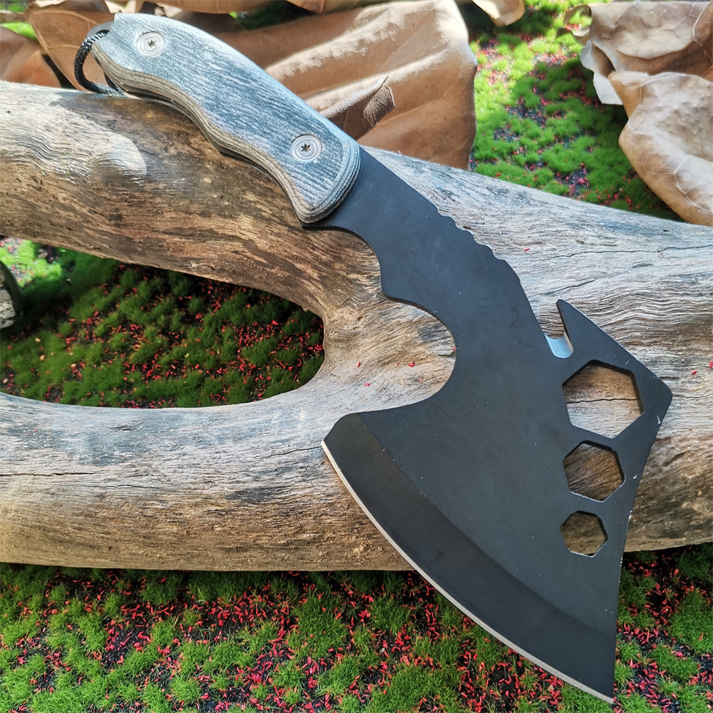 The black thermosetting coating on the blade provides corrosion and rust resistance, enhancing the durability and lifespan of the handaxe.