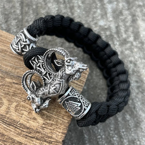Norse Odin Goat Thor Hammer Mjolnir Runes Beads Paracord Viking Bracelet