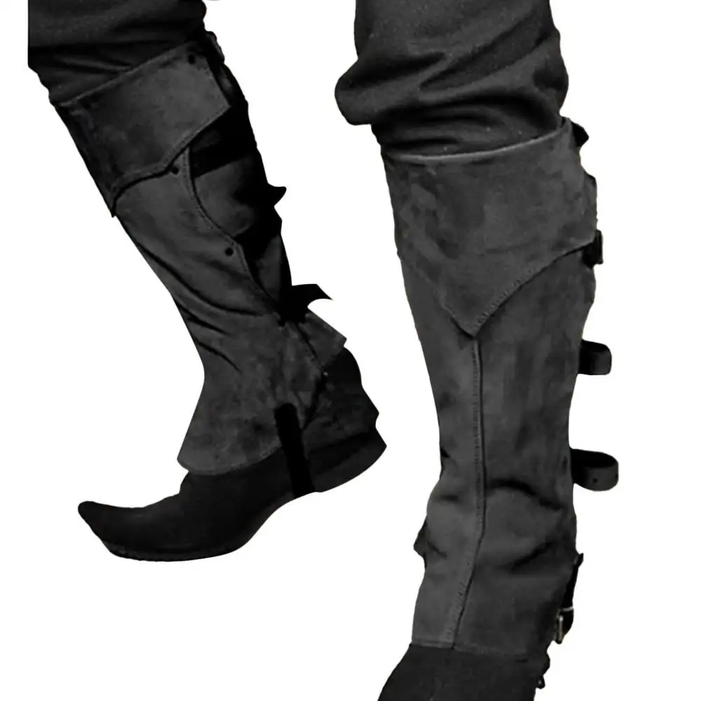 Transform outfit in seconds with these knee-high pirate boot covers made from high-quality leather material. These covers are suitable for anyone and can be stored anywhere. Perfect for Halloween and Christmas events or daily wear. Make a statement without introducing new shoes – simply slip these covers on over your favorite boots.
