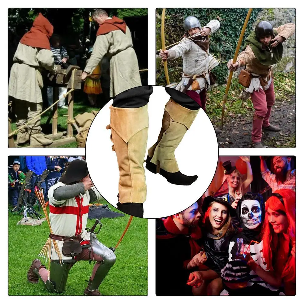 1.Ankle Brace Accessory: These boot covers are designed to fit over your ankle braces and provide extra support and comfort. They are knee height, medieval vintage, and made of faux leather for a realistic knight look.