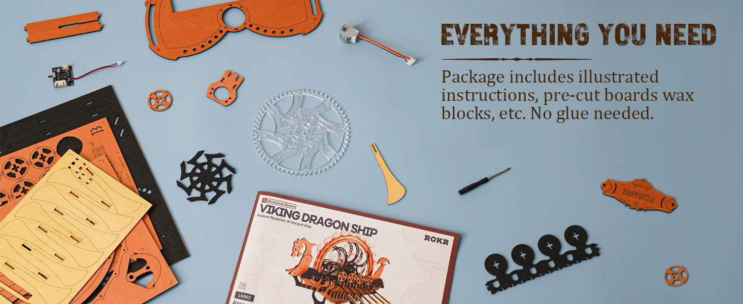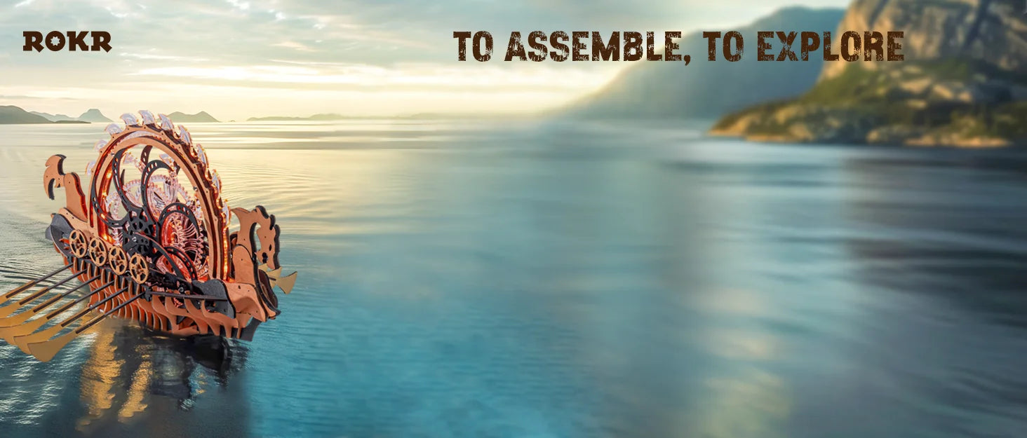 Robotime Rokr Vikingship Moveable Model for Kids Great Present Choice Eco-friendly Wood 3D Wooden Puzzle Dragon-boat Toys